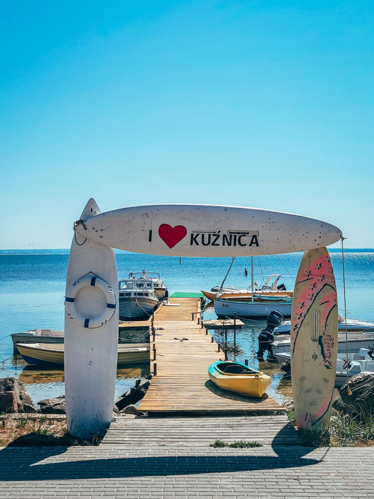 The next stop is Kuźnica, my absolutely favourite spot on the Peninsula. It also has this kitesurfing vibe and places, but also a calm fisherman village atmosphere with a small, colourful boats, and a small pier. Around Kuźnica, it’s the narrowest spot on the Peninsula.